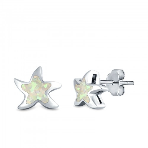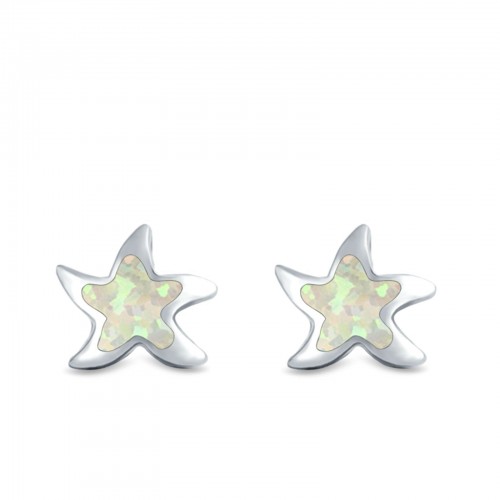 Starfish Stud Earrings Lab Created White Opal 925 Sterling Silver (9mm)