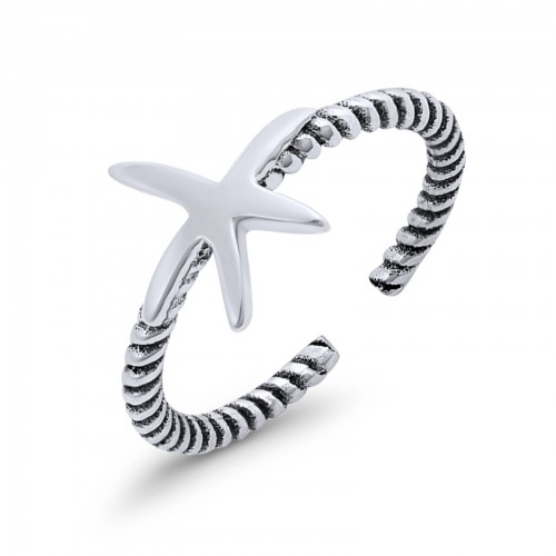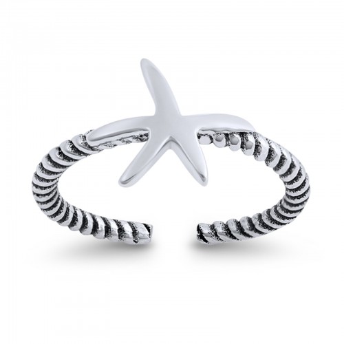 Starfish Toe Ring Twisted Braided Rope 925 Sterling Silver (8mm)