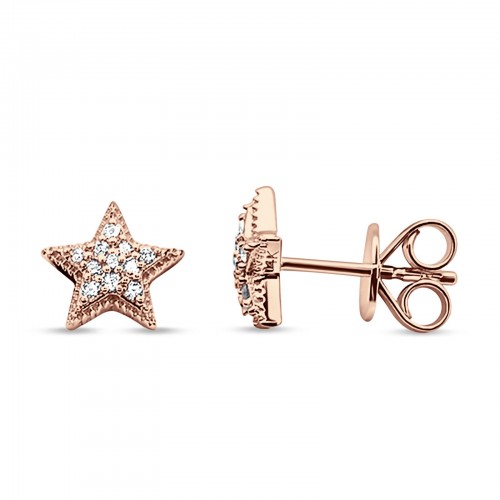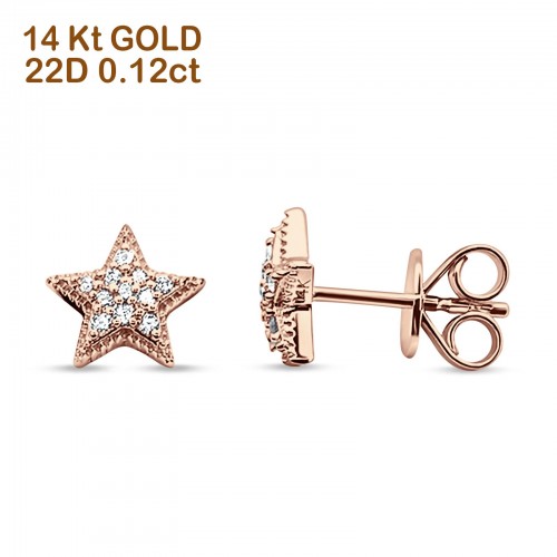 14kt Solid Rose Gold Star Stud Diamond Earrings Wholesale 8mm