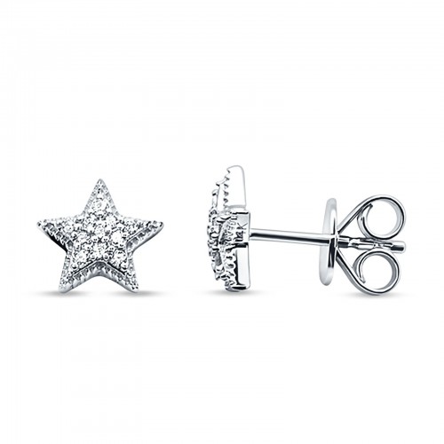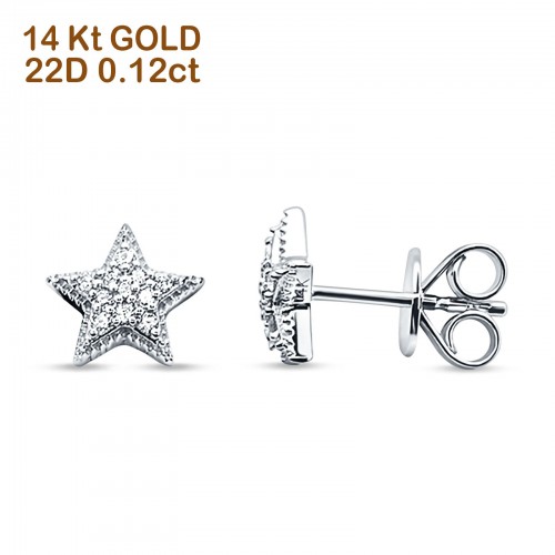 14kt Solid White Gold Star Stud Diamond Earrings Wholesale 8mm