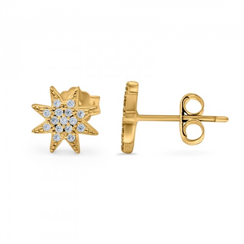 14kt Solid Yellow Gold Star Stud Diamond Earrings Wholesale 8mm