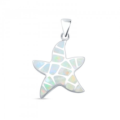 Lab Created White Opal Star of David with Cross 925 Sterling Silver Charm Pendant