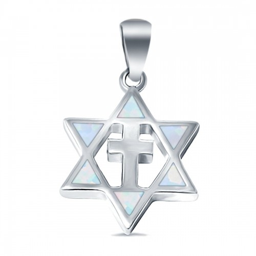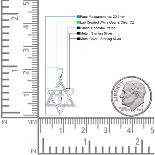 Lab Created White Opal Star of David with Cross 925 Sterling Silver Charm Pendant