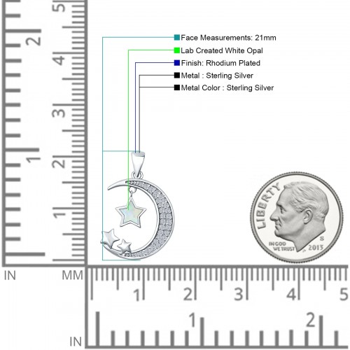 Lab Created White Opal & CZ Moon & Stars Pendant 925 Sterling Silver