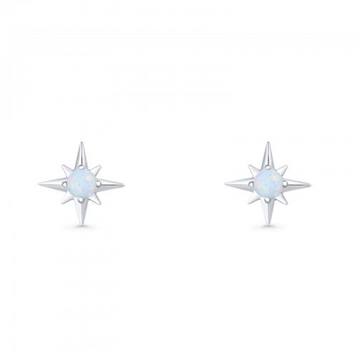 Minimalist 9.6mm Star Stud Earring Lab Created White Opal 925 Sterling Silver Wholesale