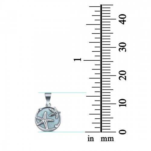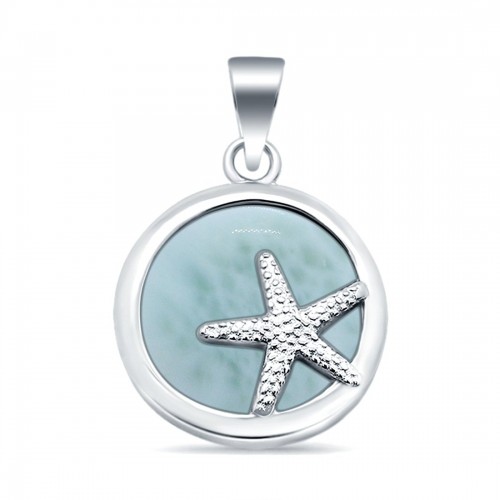 Larimar Two Starfish Round 925 Sterling Silver Charm Pendant