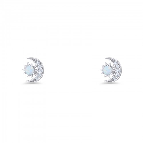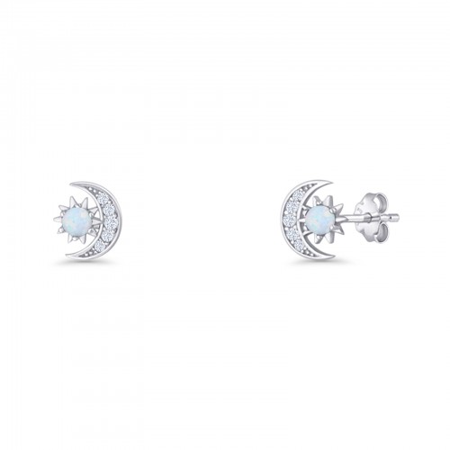 Moon & Star 8.4mm Stud Earring Lab Created White Opal 925 Sterling Silver Wholesale