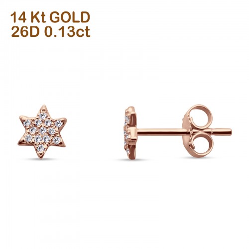 Minimalist Star Diamond Stud Earring 14K Rose Gold 0.13ct Wholesale