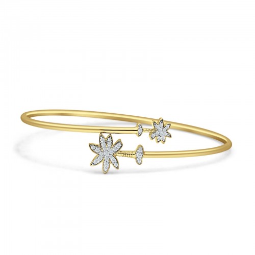 14K Yellow Gold 7 Palm Tree & Moon Bangle Round Natural Diamond Bracelet Wholesale 2.07mm