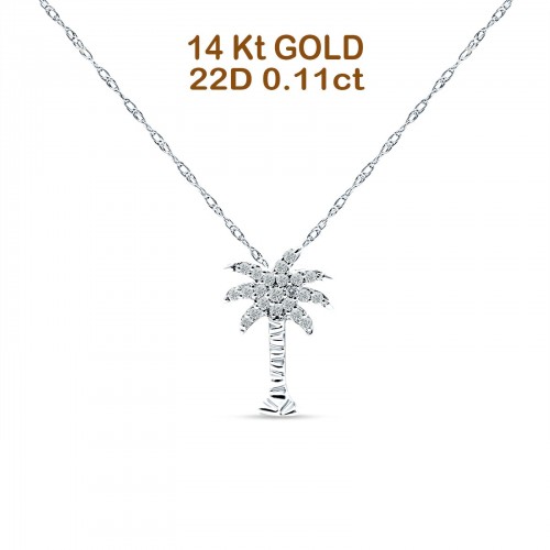 14K White Gold 0.11ct Palm Tree Diamond Pendant Chain Necklace 18″ Long Wholesale