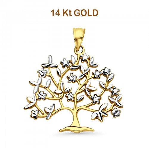 14K Gold Two Tone Solid Tree Tiny Studs Earring for Women and Girls