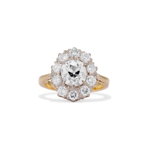 Old Mine and Modern Round Brilliant Cut Diamond Cluster Ring