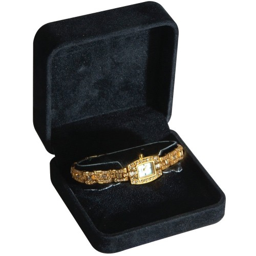 “Cassie” Small Sliding Black/Gray Drawer Box with Black Microsuede Pouch