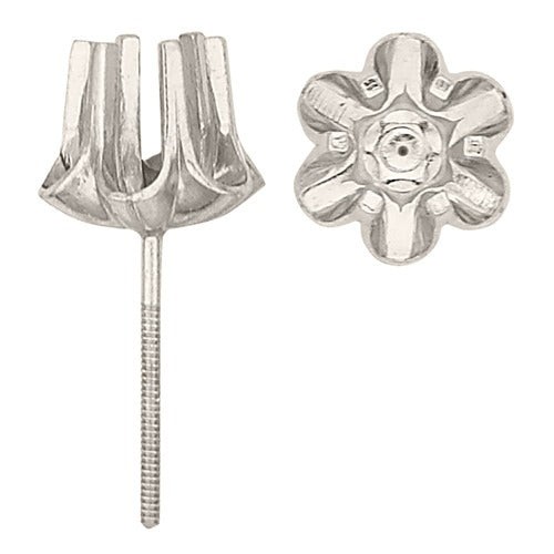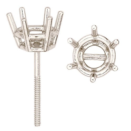 14k White Double Wire Princess-Cut Friction Back Earring w/ Round Prongs