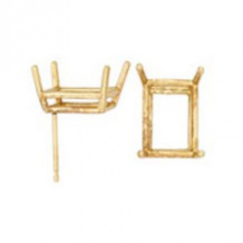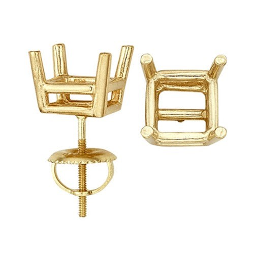 14k Yellow Double Wire Princess-Cut Screw Back Earring w/ Round Prongs