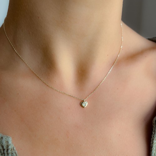 14k Gold Diamond Heart Necklace – Solid Gold Diamond Necklace – Dainty Heart Diamond Pendant
