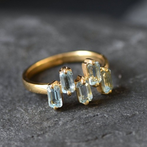 Gold Aquamarine Ring – Aqua Solitaire Ring – Vintage Gold Ring 18k Gold Vermeil Unsure about Size