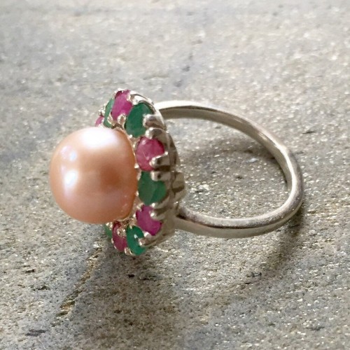 Victorian Pearl Ring – Pearl Flower Ring – Beige Pearl Ring 925 Sterling Silver Unsure about Size
