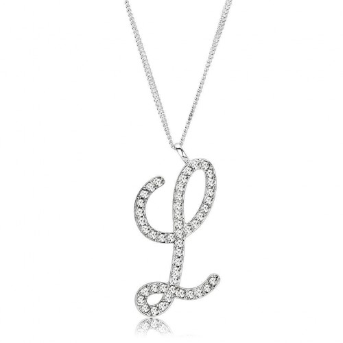 LO4709 Silver Brass Chain Pendant with Top Grade Crystal in Clear