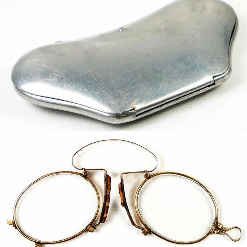 Antique 14K Gold Folding Spectacles, Pince Nez Reading Glasses and Aluminum Case