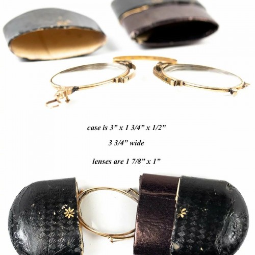Antique 14K Gold Folding Spectacles, Pince Nez Reading Glasses and Case, c.1880s