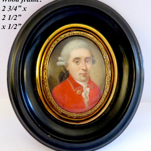 Fine Antique 18th Century French Portrait Miniature 18k Gold Brooch with Custom Fitted Period Frame