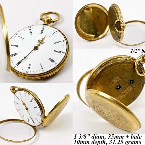 Elegantly Engraved Antique French Cesar a Lorient 18k Gold Pocket Watch, Key Wind in Box