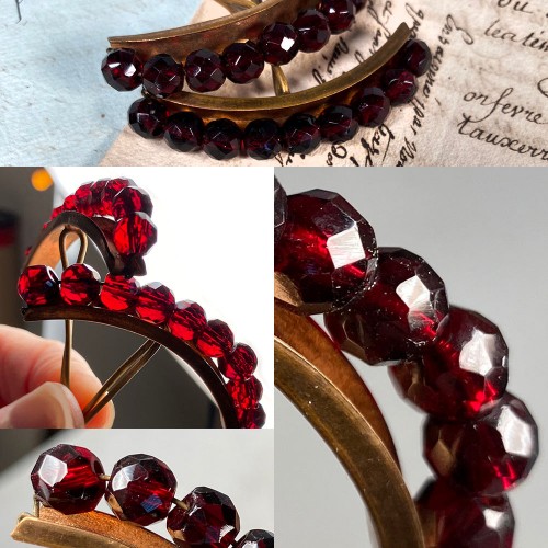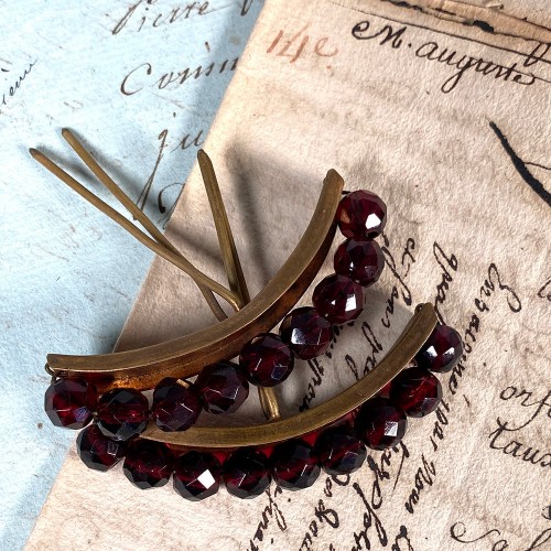 Pair Antique French Facet-Cut Garnet Tiara or Hair Ornamental Combs, Napoleon Iii Era