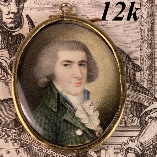 RARE 1700s Palais Royal 18k Gold & Enamel Tie or Cravat Pin, Gentleman’s Brooch