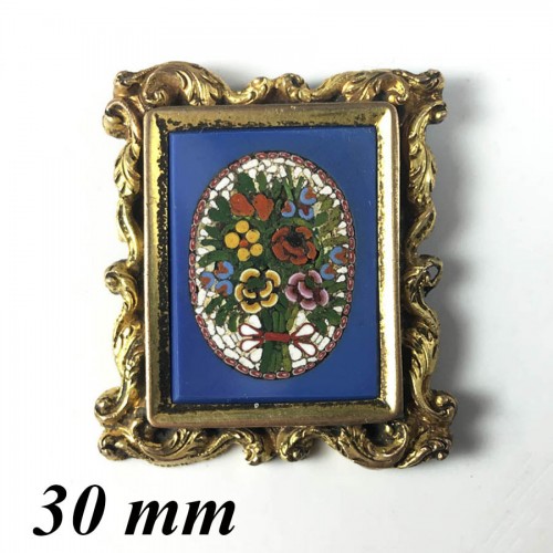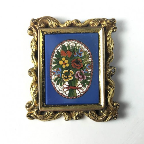 Antique 19th Century Italian Micro Mosaic Mounted Plaque with Floral Bouquet, Grand Tour Souvenir