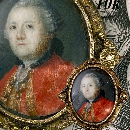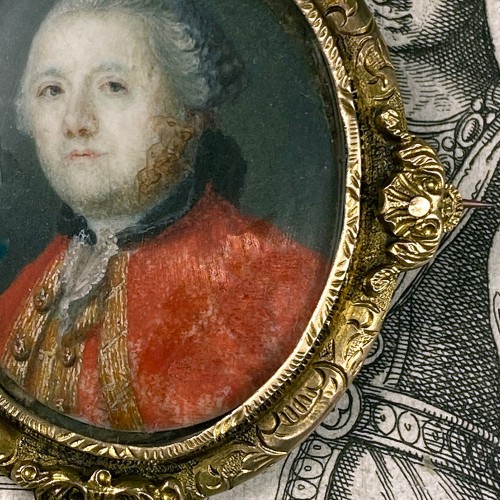 Antique 18th Century British Portrait Miniature in 19th Century 10k Brooch Mount