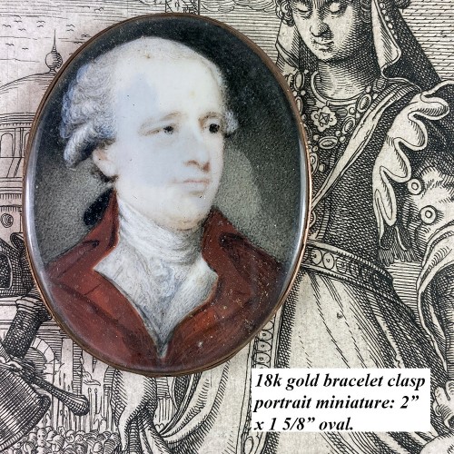 Antique 18th Century Georgian Portrait Miniature Set in 18k Bracelet or Necklace Clasp Frame