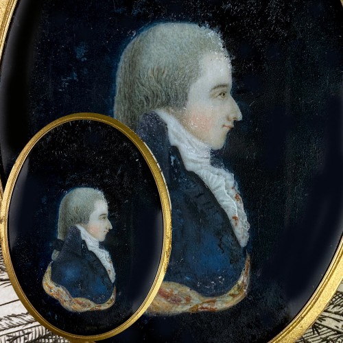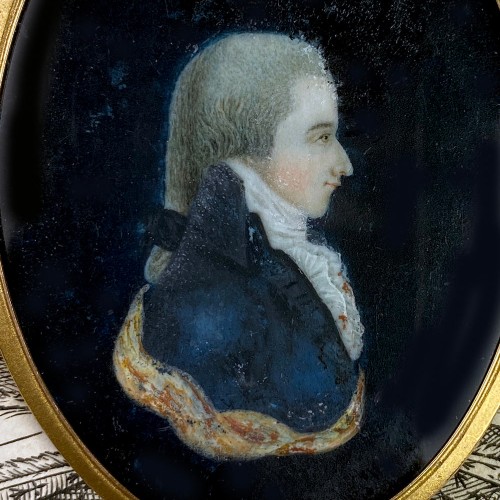 Antique 18th Century French Revolution Era Portrait Miniature, Profile of a Young Man