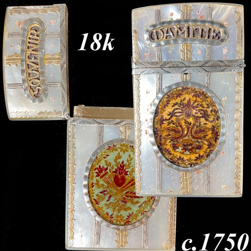 RARE Exceptional 18th Century Carnet du Bal, Necessaire, 18k Gold and Mother of Pearl Etui