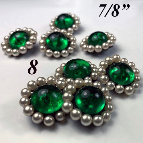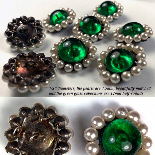 Set of 8 Handmade 19th C. French 7/8″ Buttons with Cabochons of Glass and Pearls