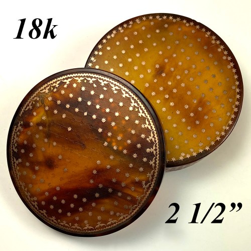 RARE Fine Antique French c.1700s Semi-opaque Tortoise Shell and 18k Gold Pique Snuff Box