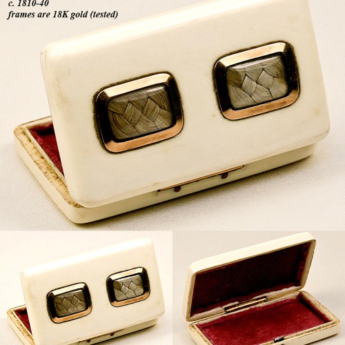 Antique Dual Hair Memento Ivory Patch Box, 18K Gold Mounts – RARE and wonderful!