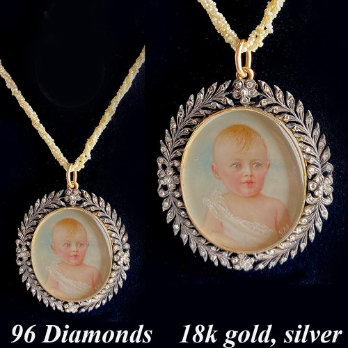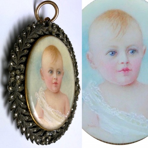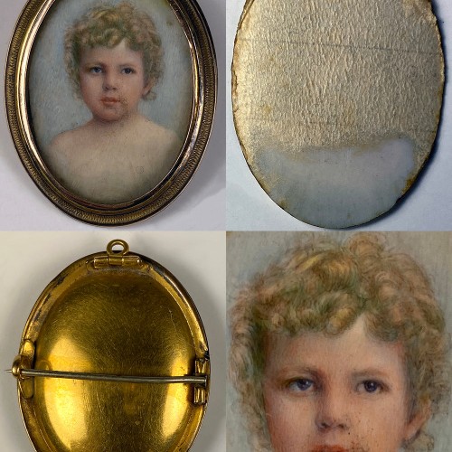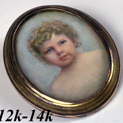 Antique English Portrait Miniature, Blond Child or Baby, 12k 14k Pendant or Brooch