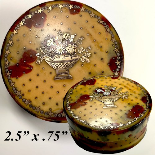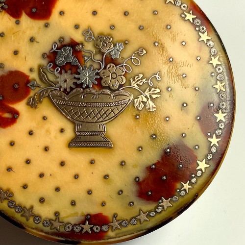 Antique Chocolate and Cognac Tortoise Shell Snuff Box, Elaborate Pique Work, c.1770s