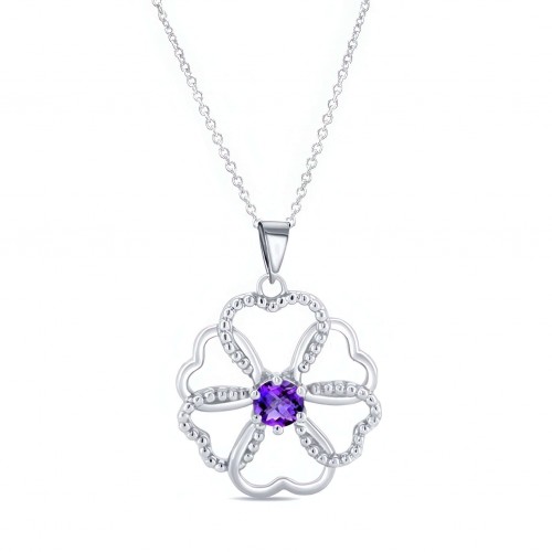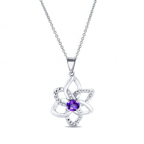 Amethyst Silver Flower Necklace