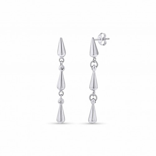 Elongated Teardrop Link Silver Earrings