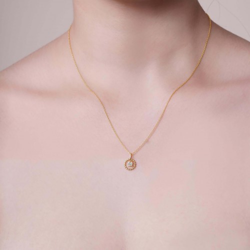 Round Beaded Lab Grown Diamond 18K Gold Vermeil Pendant Necklace