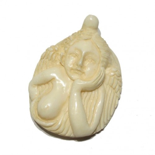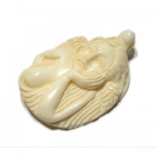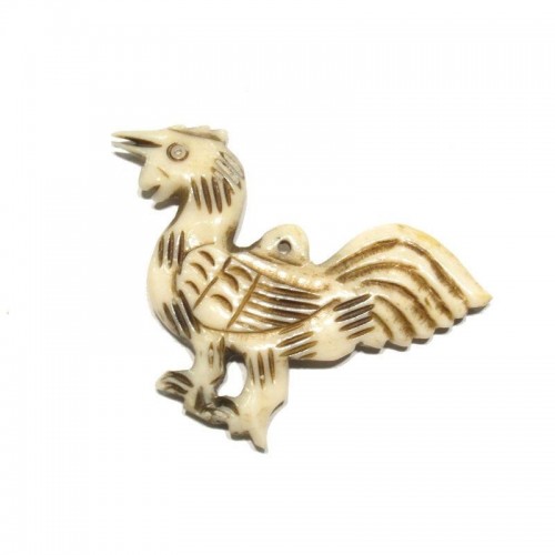 “A Non-Hazardous” Safety Razor Blade Hand Carved Cow Bone Bead Pendant
