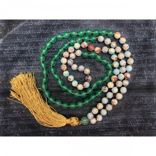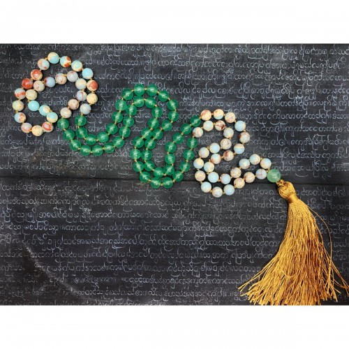 African Opal with Green Aventurine 8mm Knotted Mala with Silk Tassel #114