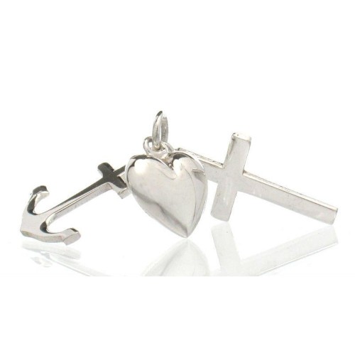 Sterling Silver Heart/ Anchor/Cross Charm, (Faith, Hope and Charity) Medium