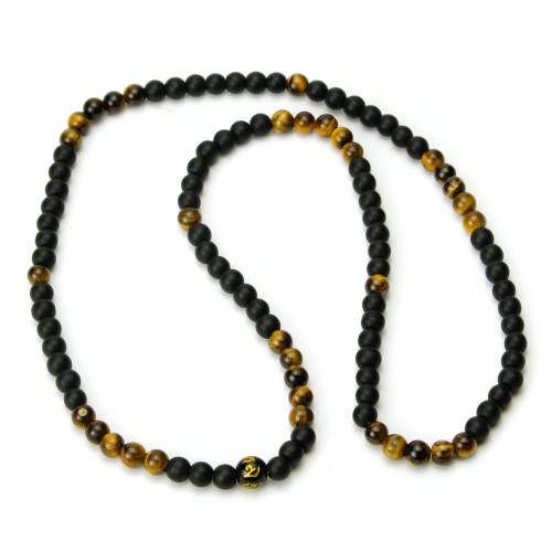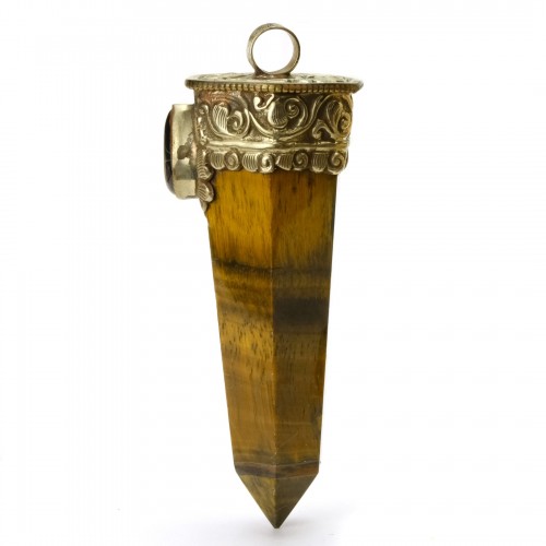 Tiger Eye Obelisk Pendant Large with a Fine Polished Black Onyx Cabochon # 80