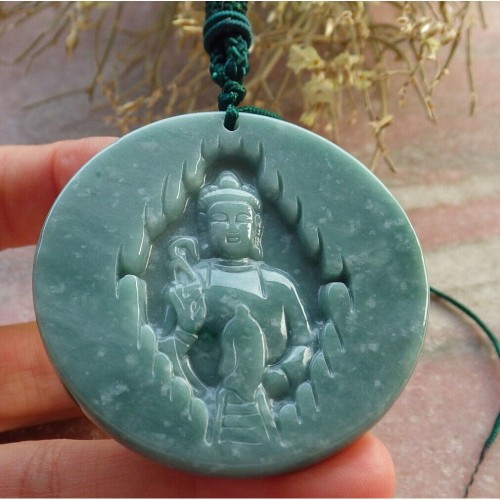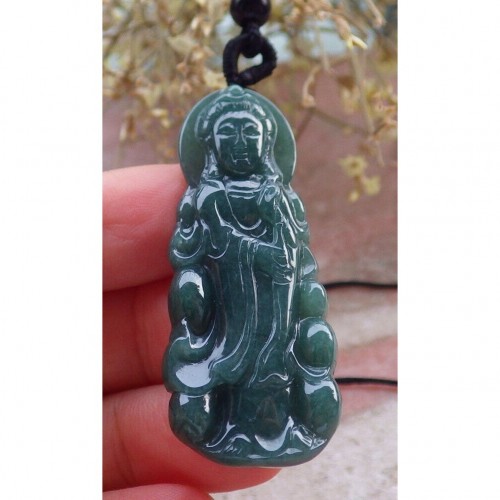 Certified Green Burma Natural A Jade Jadeite Pendant Buddha Guanyin Necklace