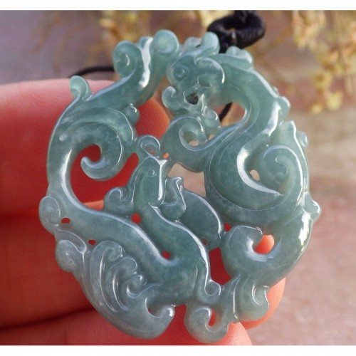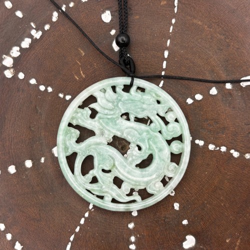 Certified Green Burma Natural A Jade Jadeite Pendant Dragon Circle