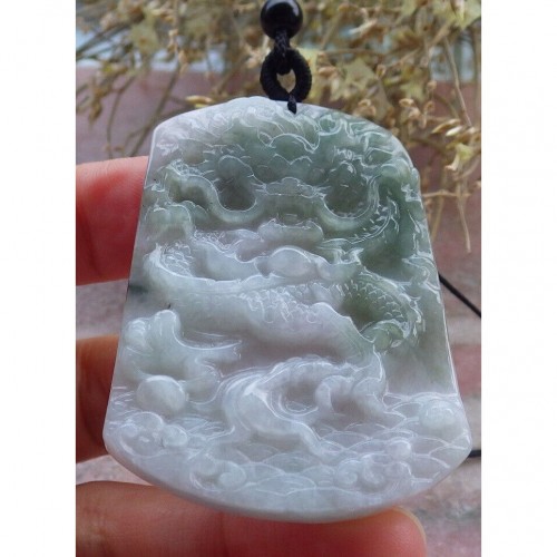 Certified Green Burma Natural A Jade Jadeite Pendant Dragon Ruyi Flower