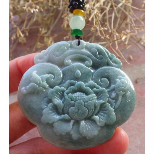 Certified Green Burma Natural A Jade Jadeite Pendant Fox Lotus Flower